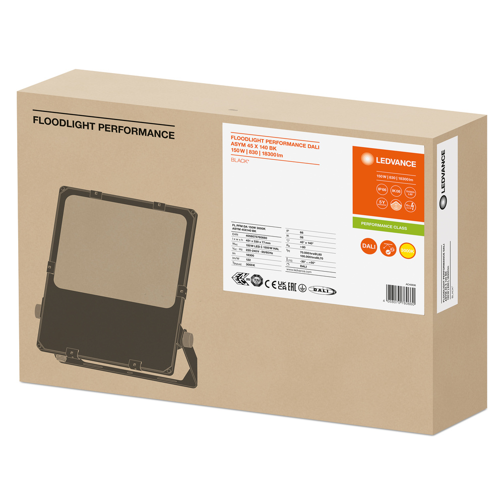 Ledvance LED floodlight FLOODLIGHT PERFORMANCE DALI ASYM 45x140 150W 3000K BK - 4058075760660