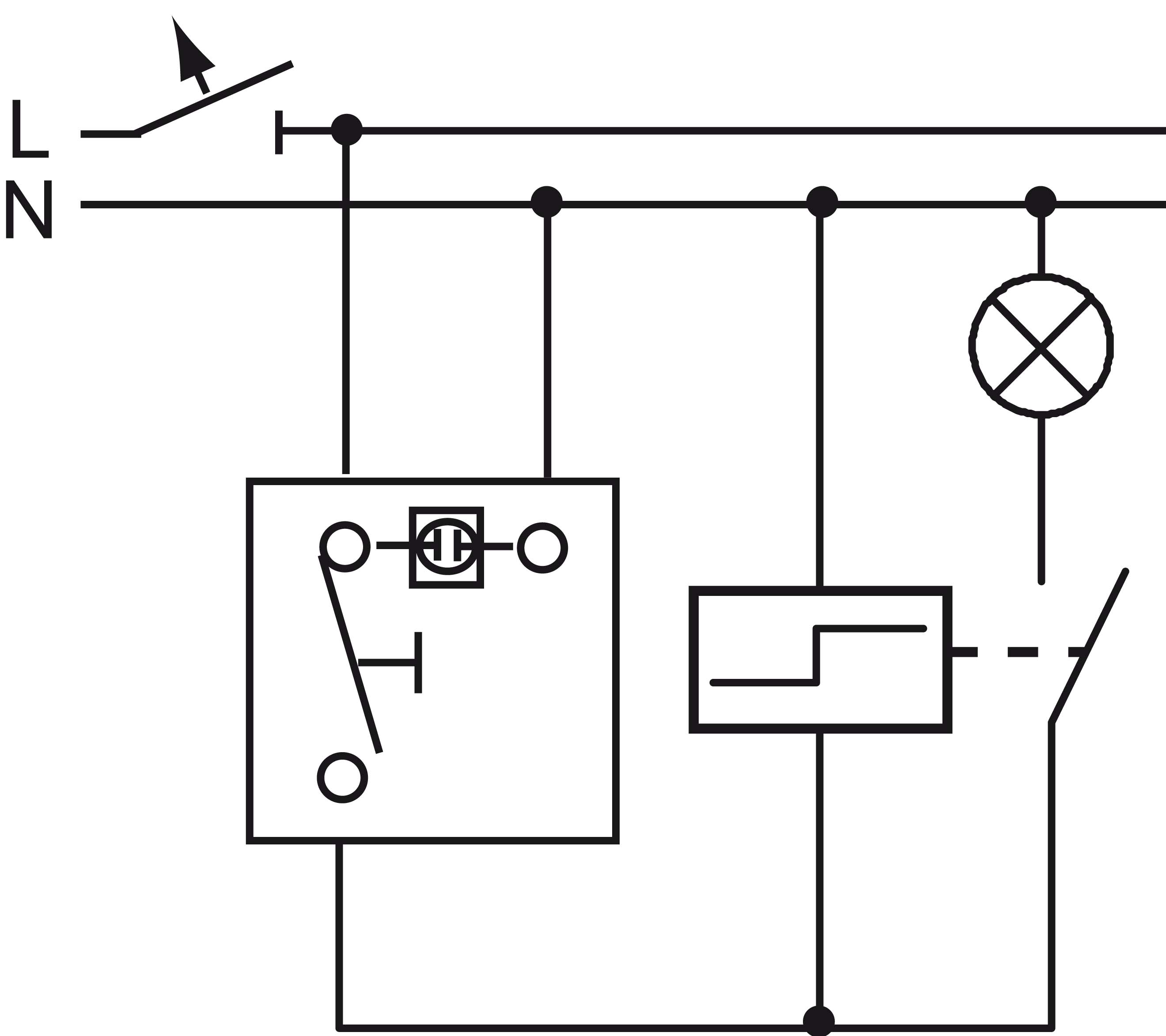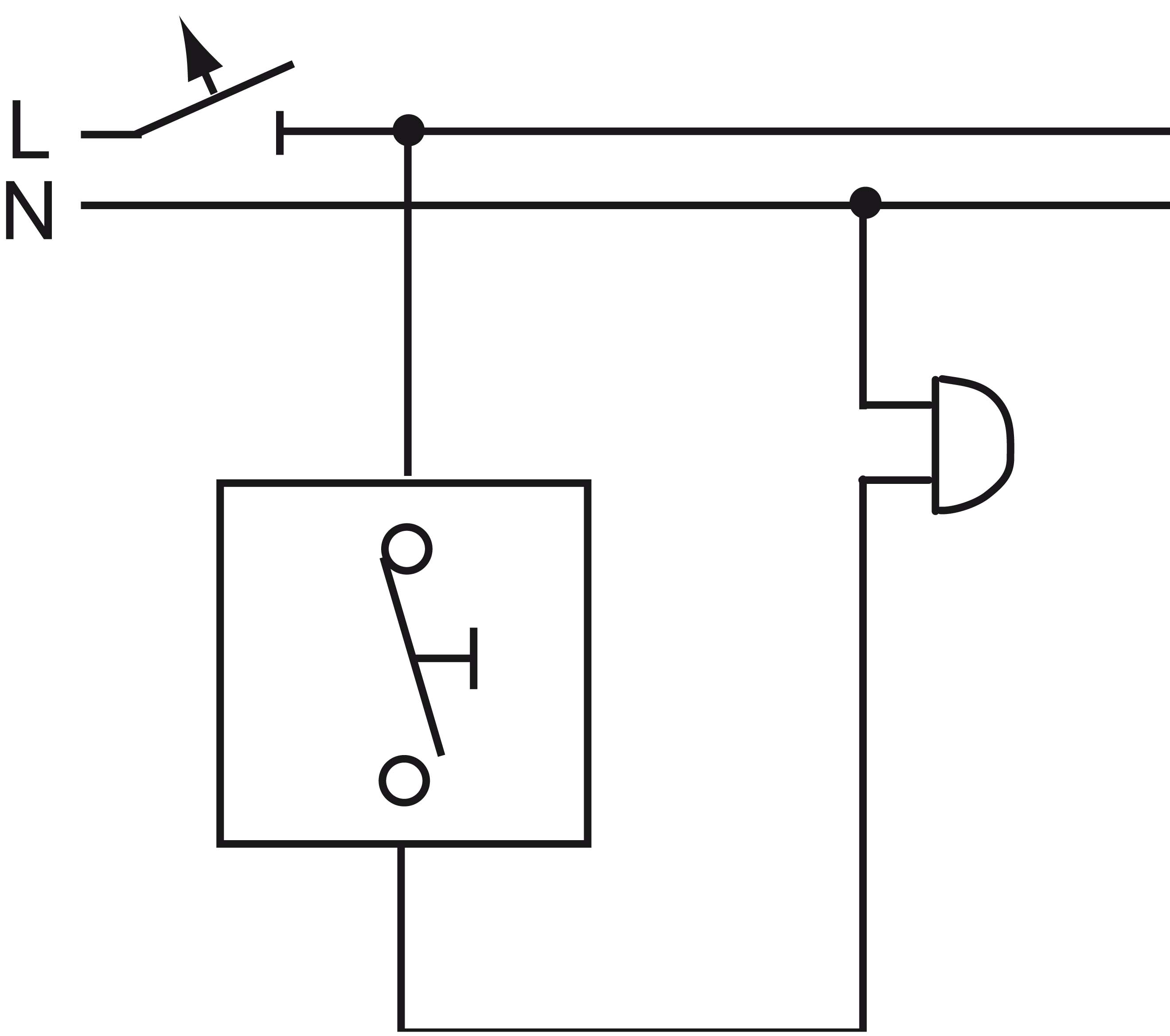 Wipptaster 1-polig, Schließer (Arbeitsstrom) Mit N-Klemme. Lieferumfang ohne Symbol.