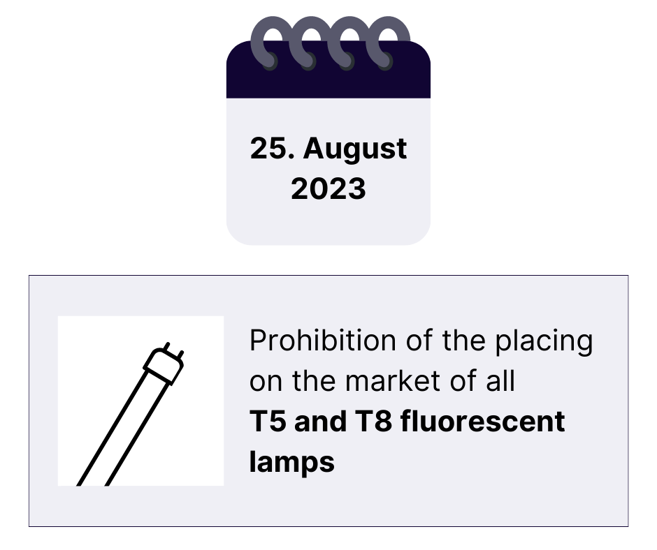 It was already decided that the placing on the market of the T8 fluorescent lamp will be banned from September 2023. The amendments to the RoHS directives from last spring put the end of the fluorescent tube a few days earlier: from August 25, 2023, T8 lamps will be phased out together with T5 fluorescent lamps.