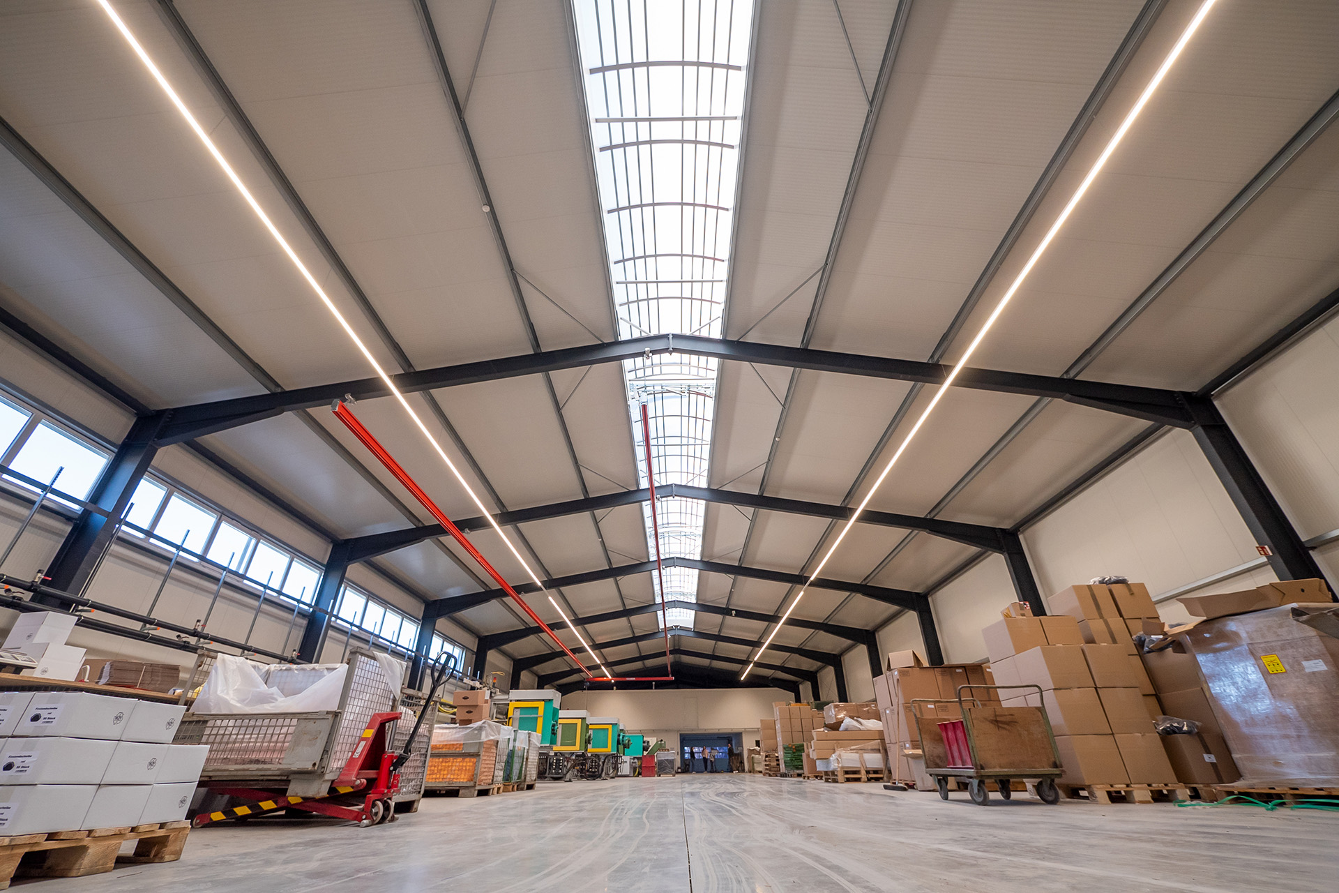 See for yourself the efficient and practical lighting solutions for the production hall, office and training rooms and for all the company's transit areas.
