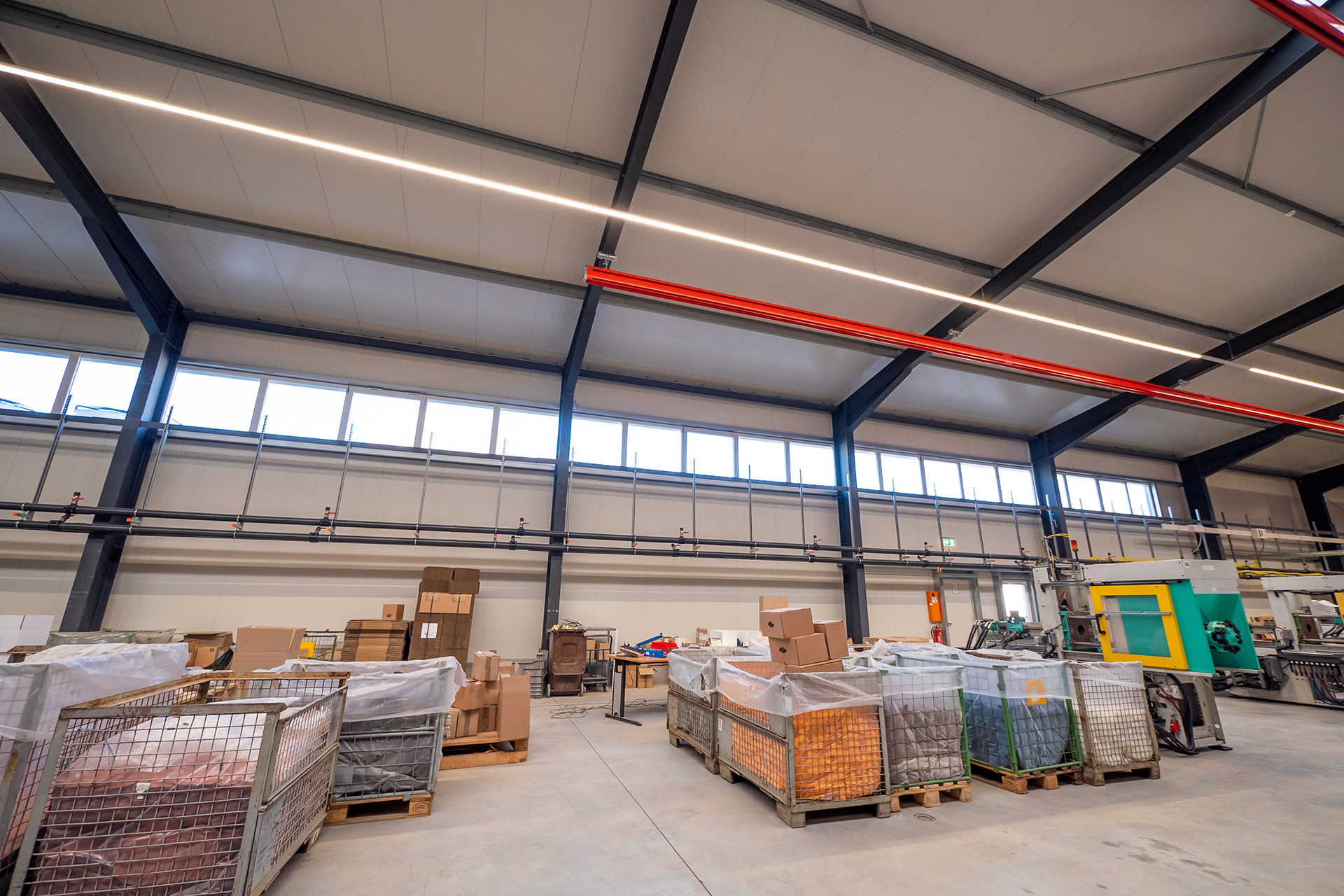 LED continuous row lighting was installed in the company's new production hall. This scores not only with the highest efficiency and durability.