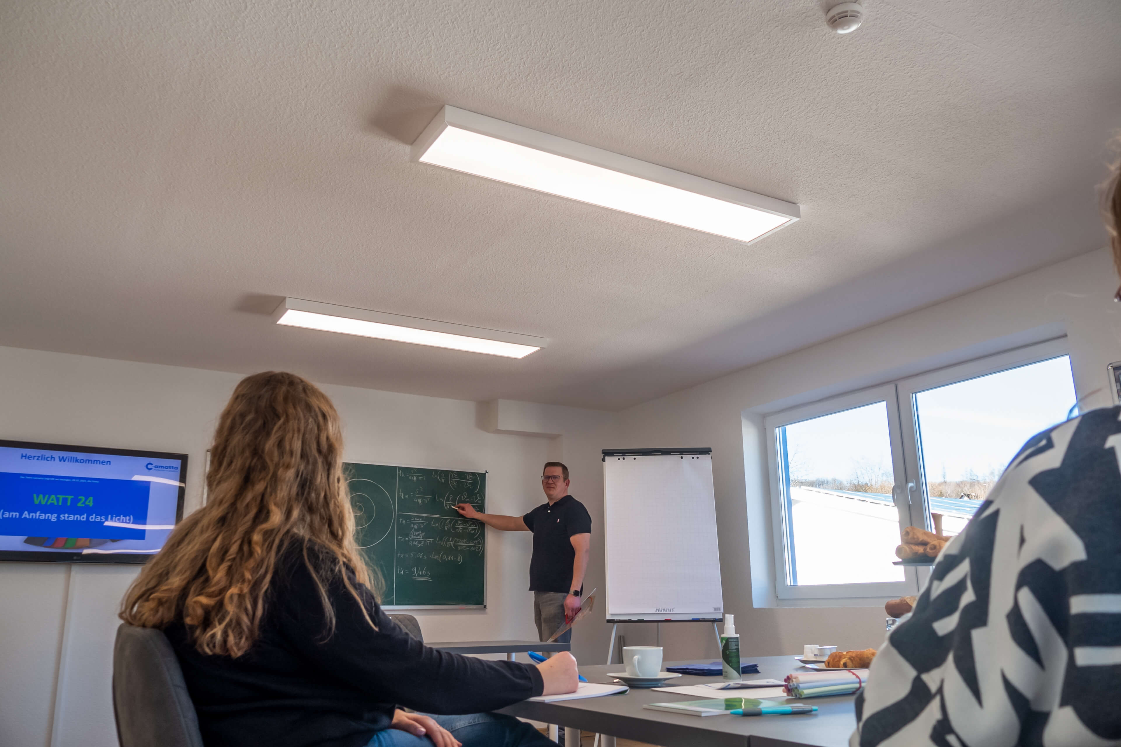 Concentrated working, teaching and learning in the office and training complex is ideally supported by optimal lighting conditions.