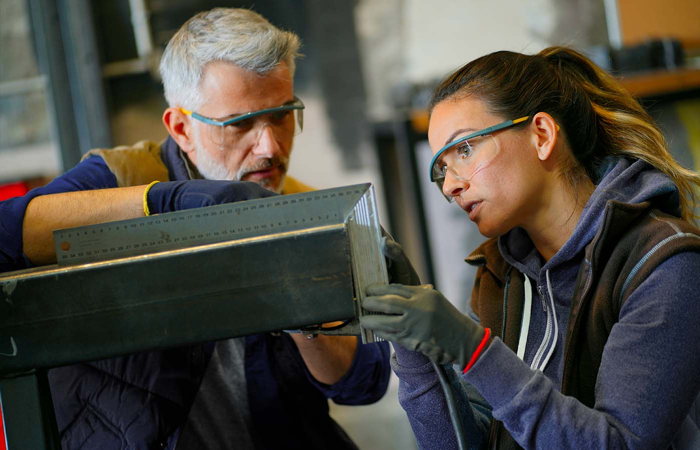The most natural light possible is important in workshops. A cool white light color of 4,000 Kelvin and more is the ideal color temperature for work in a workshop. The light should also be glare-free and have high color rendering. This increases the safety and concentration of your employees.