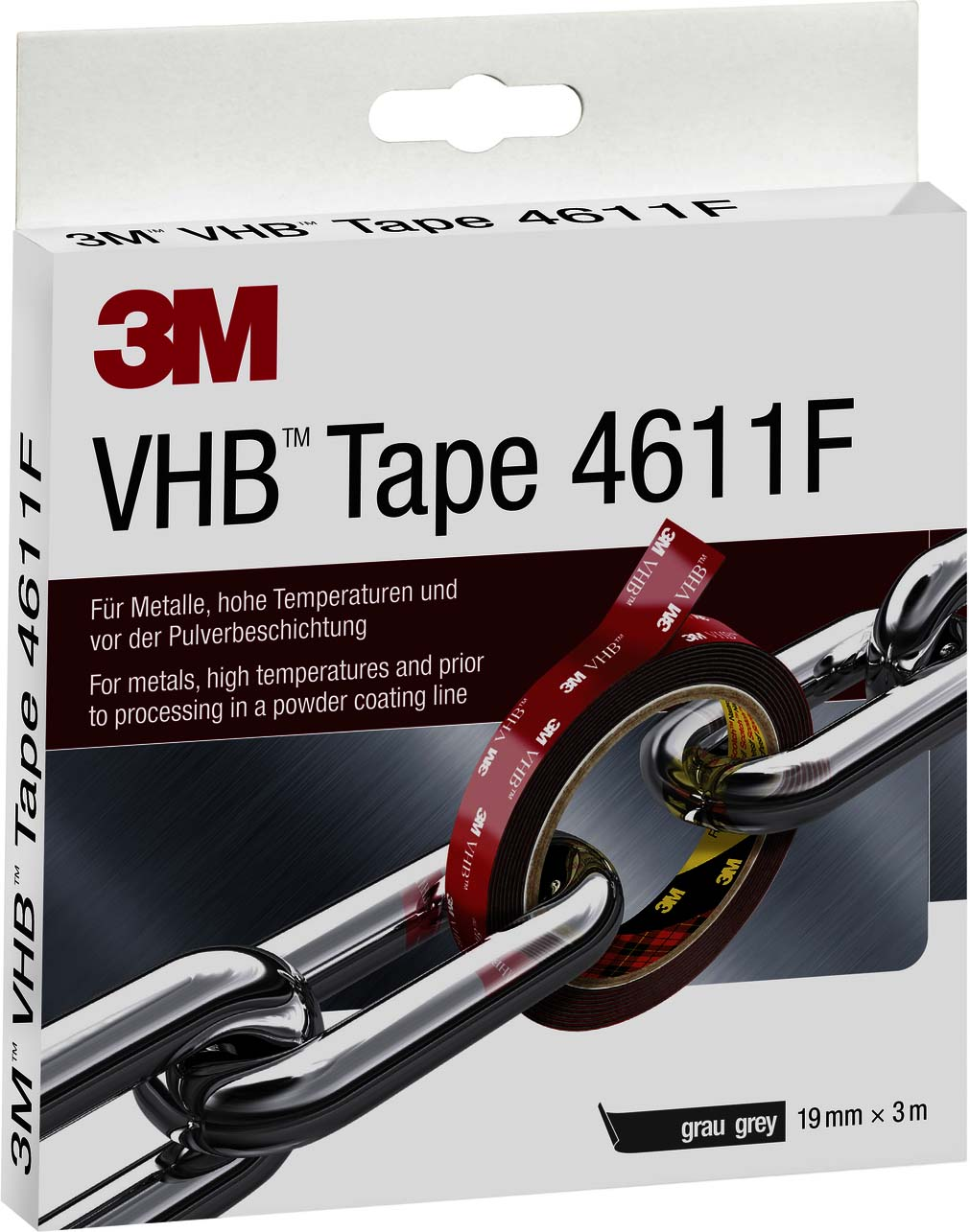 Zuverlässigkeit auf der ganzen Linie mit der 4611F-Produktfamilie der 3M VHB Klebebänder Unser 3M VHB Klebeband 4611F ist ein robustes doppelseitiges Hochleistungsklebeband mit beidseitigem Universalklebstoff. Durch seine Beständigkeit gegenüber hohen Temperaturen eignet es sich vor allem für das Verkleben vor dem Hochtemperaturlackieren. Es wird typischerweise auf metallische Materialien wie Aluminium, verzinkter Stahl und Edelstahl verwendet. Verwenden Sie dieses Klebeband für das Verkleben von Versteifungselementen und Verkleidungen, die Montage vor Lacköfen sowie für Dekorationsmaterial und Leisten. Ein unkonventionelles doppelseitiges Hochleistungsklebeband Im Jahr 1980 erfand 3M die revolutionären VHB Klebebänder. Diese einzigartigen Klebebänder kombinieren Anpassungsfähigkeit mit leistungsfähiger Haftkraft. Die VHB Produktfamilie umfasst Klebebänder mit extrem hoher Haftung auf den verschiedensten Materialien. Das 3M VHB Klebeband ist eine bewährte Alternative zu Schrauben, Nieten und Schweißnähten sowie anderen Formen mechanischer Verbindungselemente. Die Anwendungsgebiete erstrecken sich von Mobiltelefonen und elektronischen Autobahnschildern über Kühlschränke und Architekturfenster bis hin zu Hochhäusern für einen oder mehrere Schritte im Montage-, Befestigungs- und Abdichtvorgang. Dieses renommierte und zuverlässige Klebeband bietet eine konsistente Klebekraft, hervorragende Haltbarkeit und ausgezeichnete Lösungsmittel- und Feuchtigkeitsbeständigkeit. 3M tritt für alle seine Produkte ein und steht Ihnen in Bezug auf Produktanwendung und technischen Support jederzeit zur Seite. Nachgewiesene Zuverlässigkeit von 3M VHB Klebebändern Das 3M VHB Klebeband sorgt für erhöhte Haftkraft auf eine Art und Weise, wie es mechanischen Verbindungselementen nicht gelingt. Dieses Klebeband verbessert das Erscheinungsbild von fertigen Produkten, indem Nieten und Schrauben eingespart und gleichzeitig sofortige Gebrauchsfestigkeit ermöglicht werden. In den meisten Fällen ist die Befestigung mithilfe eines 3M VHB Klebebands schneller als ein Bohren oder eine Befestigung durch flüssigen Klebstoff. Diese vielseitig einsetzbaren Klebebänder können im Innen- und Außenbereich verwendet werden, u. a. für Fenster-, Tür- und Schildmontage, Elektronik, Bauwesen und viele andere industrielle Anwendungen. Das 3M VHB ist beständig gegenüber Chemikalien, UV-Strahlung sowie extrem hohen und niedrigen Temperaturen. Die einzigartige chemische Acrylatzusammensetzung bietet erhöhte Haftung und Beständigkeit gegenüber Veränderungen im Laufe der Zeit. Sie profitieren daher von einem lang anhaltenden, wirksamen und zuverlässigen Klebeband. Durch Wissenschaft und Innovation bessere Lösungen entwickeln Die Industrial Adhesives and Tapes Division von 3M beschäftigt sich mit der Wissenschaft von Haftungseigenschaften, um innovative Lösungen zu entwickeln, die die Planungs- und Fertigungsprozesse von Unternehmen auf der ganzen Welt verbessern. 3M Technologien sollen Kunden dabei unterstützen, wettbewerbsfähige Produkte schneller und effizienter auf den Markt zu bringen.