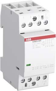 4-polige Schütze ESB25..N mit 36 mm Baubreite steuern 3-phasige Lasten bis 25 A und stehen in unterschiedlichen Kontaktbelegungen und Spulenspannungen zur Verfügung. Sie schalten elektrische Heizgeräte, Warmwasserbereiter, Motoren für Pumpen, Lüftung und sonstige Antriebe ebenso wie Beleuchtungen. Durch eine integrierte Spulenbeschaltung arbeiten sie sowohl mit AC- als auch mit DC-Steuerspannungen. Die Geräte sind deshalb absolut brummfrei und leise beim Schalten.