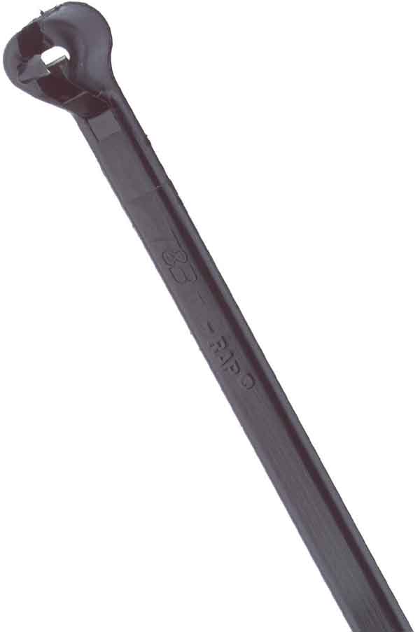 Der schwarz UV-beständige Ty-Rap Stahlnasenkabelbinder aus Polyamid 6.6 ist in mehreren Längen und Breiten und unterschiedlichen Zugfestigkeiten erhältlich. Diese Baureihe ist speziell für Installationen im Außenbereich geeignet. Der Kabelbinder ist in recycelbaren Kunststoffbeuteln mit Eurolochung verpackt und beinhaltet 2% Carbon für Militärspezifikationen. Die korrosionsbeständige, antimagnetische Stahlnase aus dem Edelstahl Typ 316 im Kabelbinderkopf garantiert den stärksten und sichersten Halt, der am Markt zu finden ist. Der leistungsstarke und zuverlässige Ty-Rap kann unter widrigsten Bedingungen wie unter Vibrationen, Hitze oder Kälte eingesetzt werden. Die abgerundeten Kanten und Konturen des Kopfes und des Binders sorgen für eine anwenderfreundliche Handhabung und verhindern, dass die Isolation der Kabel und Leitungen durch scharfe Kanten oder Verzahnungen beschädigt werden. Zudem reduziert der glatte Körper ohne Rasterzähne oder Rillen die Zahl überbeanspruchter Stellen. Die leichte Noppung auf der Innenseite des Bandes gewährleistet einen festen Sitz des Binders auf dem Kabelbündel. Eine große Auswahl an Zubehör ergänzt das Sortiment.