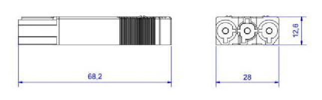 The flat connector has the dimensions 68 x 28 x 13 mm. It has IP20 protection and, when plugged in, IP40 protection.