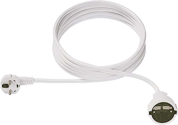 Verlängerung H05VV-F 3G1,5mm² Länge: 2,0m Farbe: Weiß 3-polig Seite 1: Schutzkontaktwinkelstecker Seite 2: Schutzkontkaktkupplung verpackt im Polybeutel