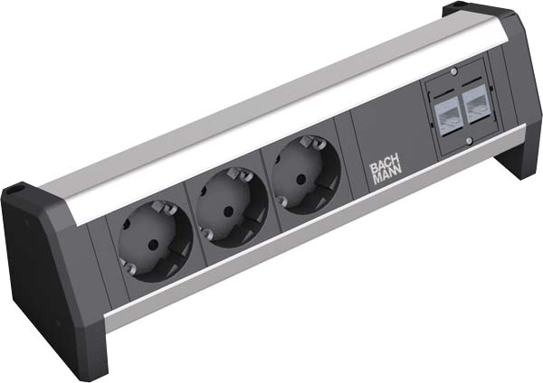 DESK ALU eloxiert 3 Schutzkontaktsteckdosen schwarz, 2xCAT6A Buchsen Stromeingang-/Ausgang GST18 - Stecker, ohne Zuleitung (separat erhältlich ), inkl. Haltewinkel und Schrauben, verpackt im Einzelkarton Desk,