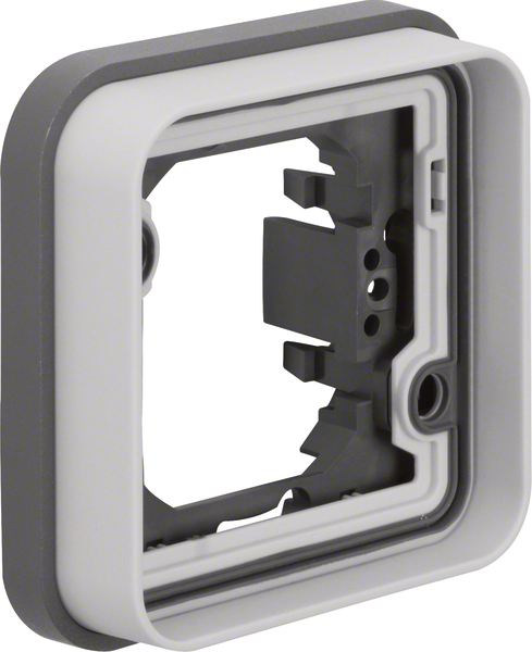Rahmen 1f für UP-Montage, mit Dichtung, W.1grau. Rahmen 1-fach für UP-Montage, lichtgrau mit Montageadapter und Dichtung zum Verschrauben auf einer UP- oder Hohlwanddose. Nur bei Montage mit einem modularen Einsatz AP/UP der Produktlinie W.1 wird der Schutzgrad IP55 erreicht.