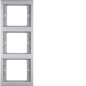 Rahmen 3fach senkrecht, K.5, Edelstahl, Metall mattiert.Abdeckrahmen zur Verwendung von Abdeckungen und Unterputz Einsätze. Material: Edelstahl ummantelt und Kunststoff, halogenfrei.