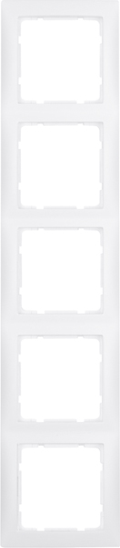 Rahmen 5fach S.1 polarweiß, matt. Abdeckrahmen für senkrechte und waagerechte Montage. Für Verwendung von polarweißen Zentralstücken. Unterputz-Installation, Standardprogramm, 5-fach. Material: Kunststoff, Thermoplast, bruchsicher, halogenfrei.