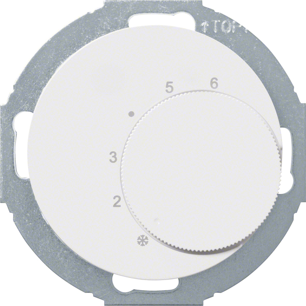 Temperaturregler mit Wechsler und Serie R.classic polarweiß, glänzend. Raumtemperaturregler mit Wechsler und Zentralstück, mit Aufdruck, Regulierknopf mit Temperaturbereichsbegrenzung. Für Heiz- oder Kühlbetrieb, z.B. für Stellantriebe stromlos geschlossen, mit thermischer Rückführung, ohne Spreizkrallen, mit Steckklemmen, Neutralleiter erforderlich, wird die eingestellte Temperatur erreicht, wechselt der Kontakt. Unterputz-Installation, Standardprogramm. Material: Kunststoff, Thermoplast, halogenfrei.