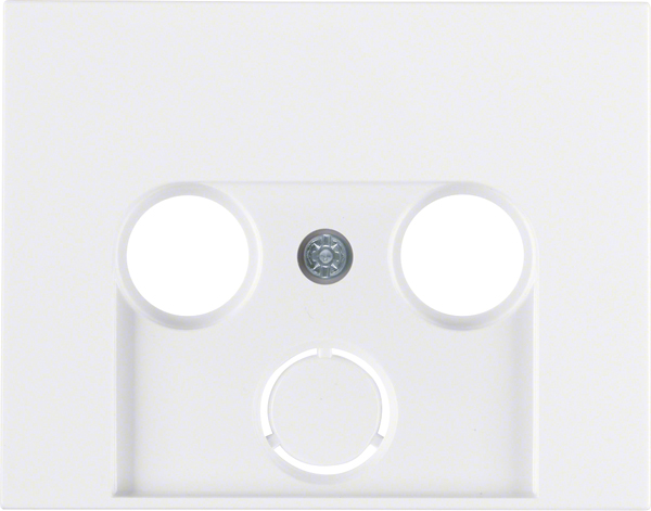 Zentralstück für Antennen-Steckdose 2- und 3Loch K.1 polarweiß, glänzend. Zentralstück für 2-und 3-Loch Antennen-Steckdosen, mit ausbrechbarem SAT-Eingang. Passend zu Antennen-Steckdosen führender Hersteller. Unterputz-Installation, Flächenprogramm. Material: Kunststoff, Thermoplast, bruchsicher, hochglänzende Oberfläche, halogenfrei.