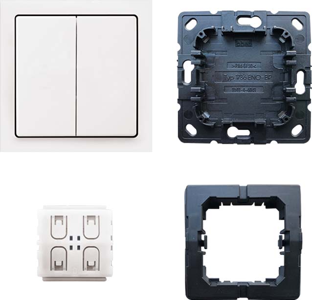 Bestehend aus Friends of Hue smart switch Einsatz 6716 U-500. Bestehend aus 2-fach Wippe 6736 FoH-8xx für Friends of Hue smart switch. Bestehend aus 1-fach future® linear Abdeckrahmen. Bestehend aus Befestigungsplatte und Zwischenring. Smarter Lichtschalter zum drahtlosen Fernsteuern von Philips Hue Leuchtmitteln Zum Schalten und Dimmen von Philips Hue Leuchtmitteln. Zum Abspeichern, Aufrufen und Dimmen von max. 2 individuellen Lichtszenen. Batterielos und wartungsfrei durch >Energy Harvesting<. Mittels beiliegendem Klebeband und Befestigungsplatte frei im Raum montierbar. Erfordert Philips Hue Bridge (2. Generation eckige Bauform) und Philips Hue App (Version 3.2 oder höher). Maximale Funktionssicherheit durch Zigbee-Mesh-Technologie. Kombinierbar mit den Busch-Jaeger Schalterprogrammen carat®, Busch-dynasty®, pur edelstahl, solo®, Busch-axcent® und future® linear. Inkl. Befestigungsplatte zur Montage auf glatten Wänden oder auf Schalterdosen.