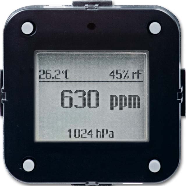 Mit Anzeige für Kohlendioxid, Luftfeuchtigkeit, Temperatur und Luftdruck. Einstellwerte: Kohlendioxid 800 ppm ¿ 1500 ppm, Luftfeuchtigkeit 40% ¿ 95% . Mit 2 potentialfreien Relaiskontakten. Nennspannung: 230 V~ Nennstrom 6 A cos f = 1 Ohne Spreizbefestigung. Passend für Zentralscheibe 6435-xxx. Nur in Verbindung mit handelsüblichen UP-Gerätedosen nach DIN 49073, montieren oder Busch-Jaeger Art.-Nr. 3040 UP-Dose Mauerwerk, 3050 UP-Dose Hohlwand oder 3060 UP-Dose Beton)