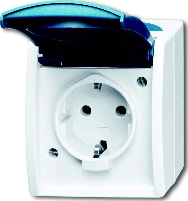 Schutzkontakt® Steckdose mit Klappdeckel Mit Steckanschluss. 2 P + E, ocean grau/blaugrün.