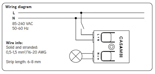 With the IP20-protected CASAMBI CBU-TED phase-section dimmer for dimmable high-voltage consumers, you can expand your existing (LED) lighting easily, and then conveniently control, group, and dim it with your smartphone and tablet, or with the normal light switch. The maximum output power of the CBU-TED is 100 W at 230 VAC and 50 W at 110 VAC. The CASAMBI module can easily be integrated into your existing lighting system - whether into simple LED lighting (light bulb or halogen spot replacement / retrofit) or complex applications with electronic LED ballasts. Once you start the app (iOS + Android), all connected CASAMBI modules in the reception area will be detected. The devices form a continuous mesh based on the extensive and energy-saving standard Bluetooth 4.0. The app offers you a wide range of control options, such as switching and dimming all the lights, groups of luminaires or individual lamps, and calling scenes. You can also call scenes and set the switch-on dimming level with an optional mains switch. Up to 255 different scenes can be created using the phase section dimmer, each scene containing up to 127 CASAMBI units. All luminaires in a scene can have different dimming values, colors or color temperatures. A timer function is available for automatic on and off switching of scenes.