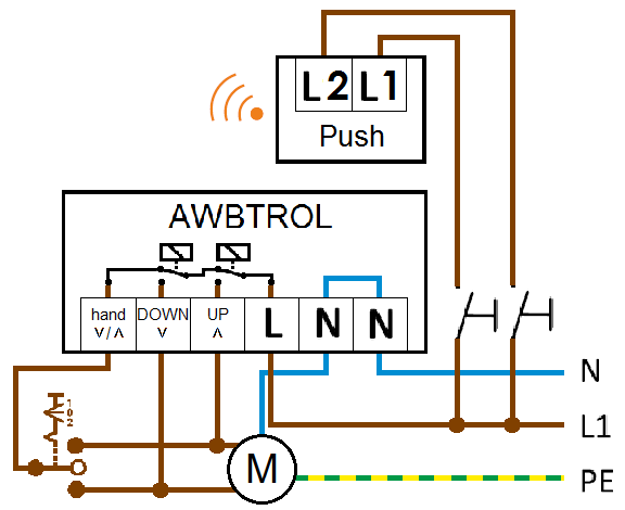 - With button for function test (trigger with voltage tester or similar). Repeated press: UP DOWN Control LED on off green off off off off on red off off off off