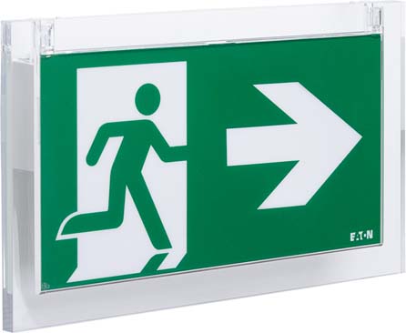 CrystalWay 19522 1-8h/D AT, Rettungszeichen-Scheibenleuchte 30m, für Wand- und Deckenmontage, inklusive Piktogramm-Set (Pfeil rechts, links, unten, blind)