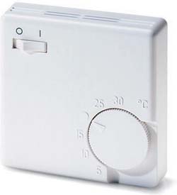 Raumregler für Wandbefestigung. Eignet sich für die Regelung von Zentral-, Warmwasserfussboden-, Elektro-, Nachtspeicherheizungen usw.. Schalter Ein/Aus. Bimetall-Technik mit thermischer Rückführung und hoher Präzision. Aufputzmontage oder direkt auf UP-Dose mit senkrechten Befestigungslöchern oder mit Schnappbefestigung auf DIN-Schiene.