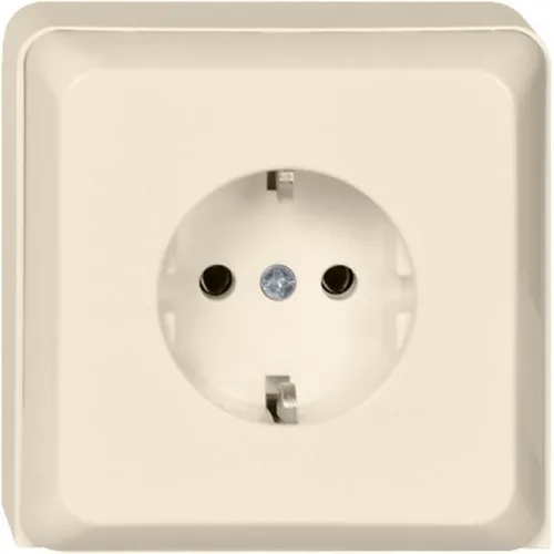 Steckdose im Geräteträger für Kanalanschluss oder Abschlussplatte 16 A 250V AC, 1-fach. Farbe: perlweiß, Schraubklemmen: Klemmbereich für je zwei Kupferleiter 1,5 mm oder 2,5 mm, für den sicheren Anschluss von unvorbehandelten Aluminiumleitern 2,5 mm.