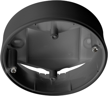 Aufputzdose-C IP 20 in schwarz für viele Decken-Bewegungsmelder der Serie MD-C und Decken-Präsenzmelder der Serie PD-C. Großer Verdrahtungsraum mit 4-facher Leitungseinführung.