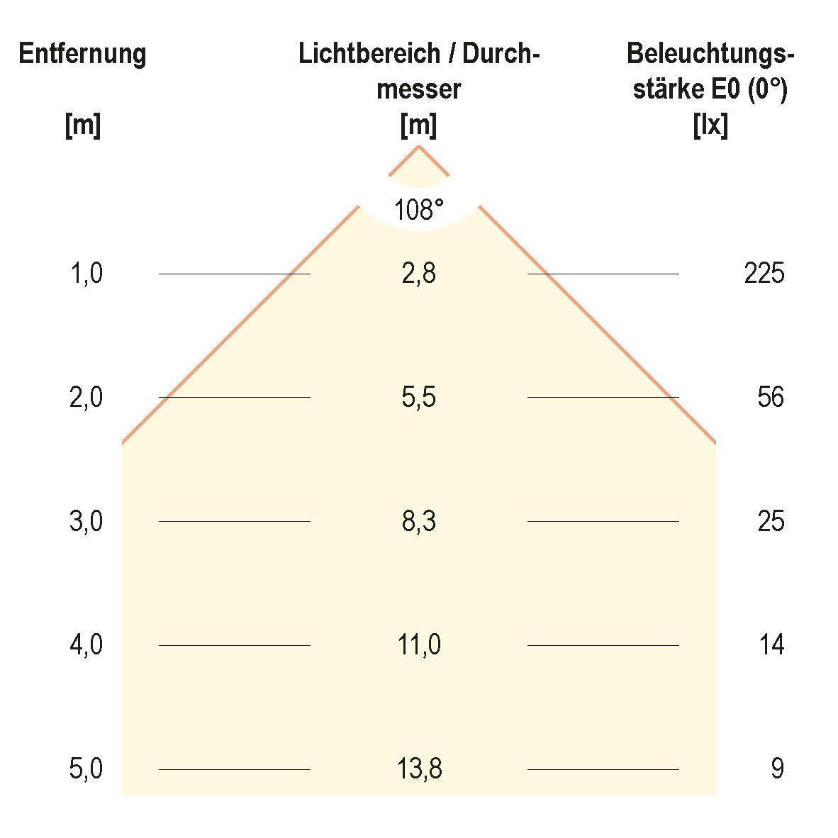 | Ausstrahlungswinkel | extrem breitstrahlend >80° |