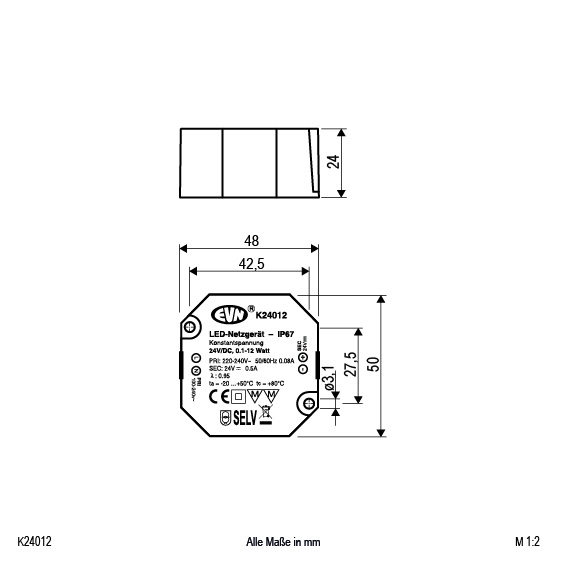 Product information "EVN Lichttechnik LED-Netzgerät 24VDC 12W K24 012 - K24012"