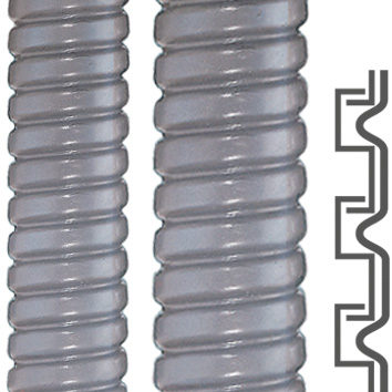 Metallschutzschlauch SPR-PVC-AS, Ringe, IP 68 wendelgewickelter Metallschlauch, S-Profil, PVC-Mantel, nicht flammverbeitend Material: Stahl verzinkt / PVC, Farbe: grau (auch in schwarz lieferbar) Temperaturbereich: -25°C ... +90°C ^ +100°C Zulassungen: VDE-geprüft nach EN IEC 61386-23 / Gost Eigenschaften: sehr flexibel / wetterfest / wasserdicht / silikon- und cadmiumfrei / zugfest / querdruckbelastbar Einsatzbereich: Maschinenbau / Anlagenbau / Fahrzeugbau / Schiffsbau / Automation / Elektroanlagen