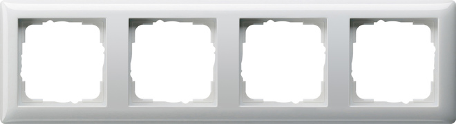 Abdeckrahmen Gira Standard 55 Reinweiß glänzend 4fach Merkmale: Bruchsicher. Hinweise : Auch für Kanalinstallationen geeignet. Abdeckrahmen (1- bis 5fach) in Verbindung mit Dichtungsset auch für die Montage wassergeschützt Unterputz IP44 geeignet.