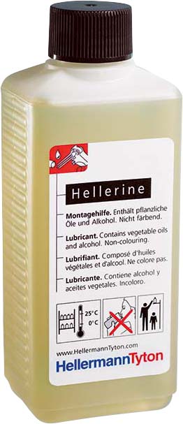 99% aus pflanzlichen Ölen Verflüchtigt sich nach der Montage Verfärbungsfrei Verfügbar in der leichten Kunstoffflasche oder im Kanister Hellerine ist eine effektive Montagehilfe für das Aufziehen von Schläuchen und Tüllen.