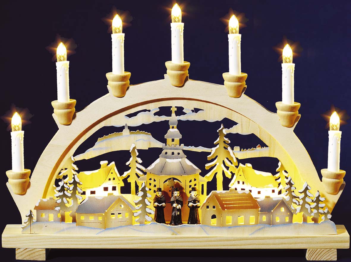 Holzleuchter für Innenbeleuchtung, Riffelkerze, Farbe natur/bunt, Steckerzuleitung 1,5 m, inkl. Ersatzlämpchen