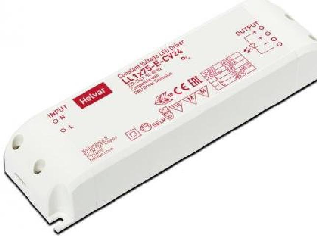The 24V constant voltage LED driver LL1x75-E-CV24 from Helvar is suitable for installation in Class I and II luminaires or for independent mounting. It has a nominal output of up to 75 watts.