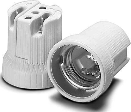 E27-Fassung, einteilig Material: Porzellan, weiß, T270 Nennwert: 4/250/5 kV Buchsenklemmen: 0,5-2,5 mm² Druckfeder unter Mittelkontakt Durchgangslanglöcher für Schrauben M4 Gewicht: 60,6 g Typ: 62050