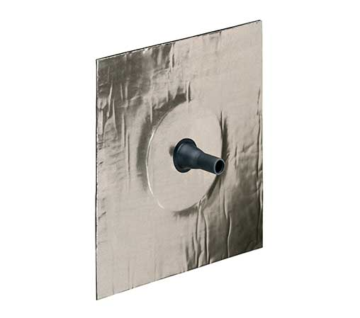 Alu-Butyl Dichtungsmanschette (9079-46). Zur dauerhaft sicheren Abdichtung von Installationsdurchdringungen durch z. B. Mauerwerk, Beton oder Holzwerkstoffe. Die hochelastischen Manschetten sind mit reißfesten Alu-Butyl-Klebekragen ausgestattet und bieten höchste Klebekraft. Einige Untergründe müssen mit dem KAISER-Haftprimer vorbehandelt werden. Länge: 150 mm | Breite: 150 mm