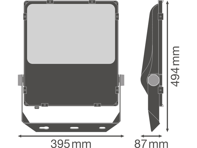Headlights with rotation -symmetrical light distribution for large mast heights. Product properties: High light output: up to 140 lm/w. Rotation -sensitive light distribution for high installation heights. Bumped (45 °) assembly bracket with a rotary range of up to 180 °. Protection class: IP66. Short strength: IK08. Ambient temperature area for operation: -30 ...+50 ° C. High overvoltage protection of up to 10 kV (L/N-PE), 6 KV (L-N). Integrated climate membrane to prevent condensation inside the lamp. Connection via cable (2 m), wiring required. Product advantages: Energy savings of up to 90 % compared to halogen lamp floods. Up to 45 % energy savings compared to lights that use conventional discharge lamps. Bright, robust and durable. Uniform luminance distribution and reduced glare. No light exit in the upper half area (Ulor 0%) at 0 °. Key hole for particularly easy assembly. 5 years of guarantee. Areas of application: Direct replacement for lights that use HID lamps. Exterior application (IP66). Parking spaces. Uefental space. Industry. Sports facilities. Large area lighting. D-signs in accordance with EN 60598-2-24 for fire-hazardous branches, e.g. B. by accumulation of dust.