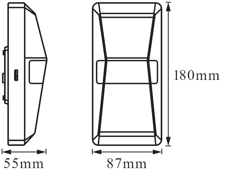 Outdoor wall sensor lights in a modern form with light exit at the top and bottom. Product properties: 4 setting options selectable (light 6h permanently on, stand-by, switch on when moving or dusk). Protection class: IP55. Short strength: IK05. Protection class: II. Product advantages: decorative wall spotlights. Simple and quick installation. Areas of application: outdoor areas. Broadcasting of facades. Arcades.