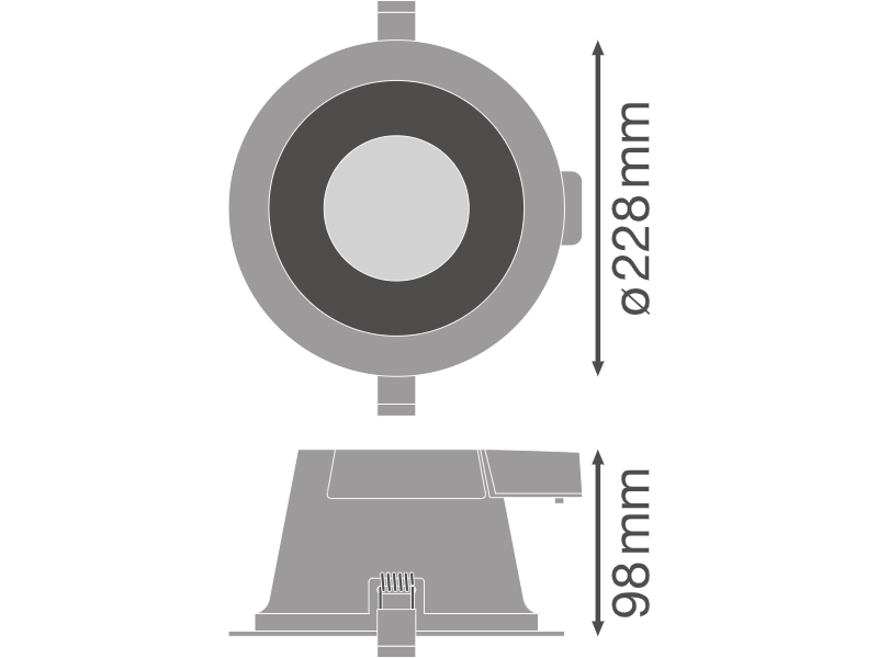 Downlights with adjustable white light color. Product properties: three light colors adjustable using a slide switch. Protection class: IP54. Connection box with plug -in clamp for toolless connection. Wiring through. Product advantages: Three light colors in one lamp: warm white, cold white and daylight white. Simple installation thanks to the integrated driver. Easy installation with quick connection. 5 years of guarantee. Areas of application: Direct replacement for lights with compact fluorescent lamps. General lighting. Bathroom. Kitchen. Offices. Slide. Input areas. Businesses. Stairwells.