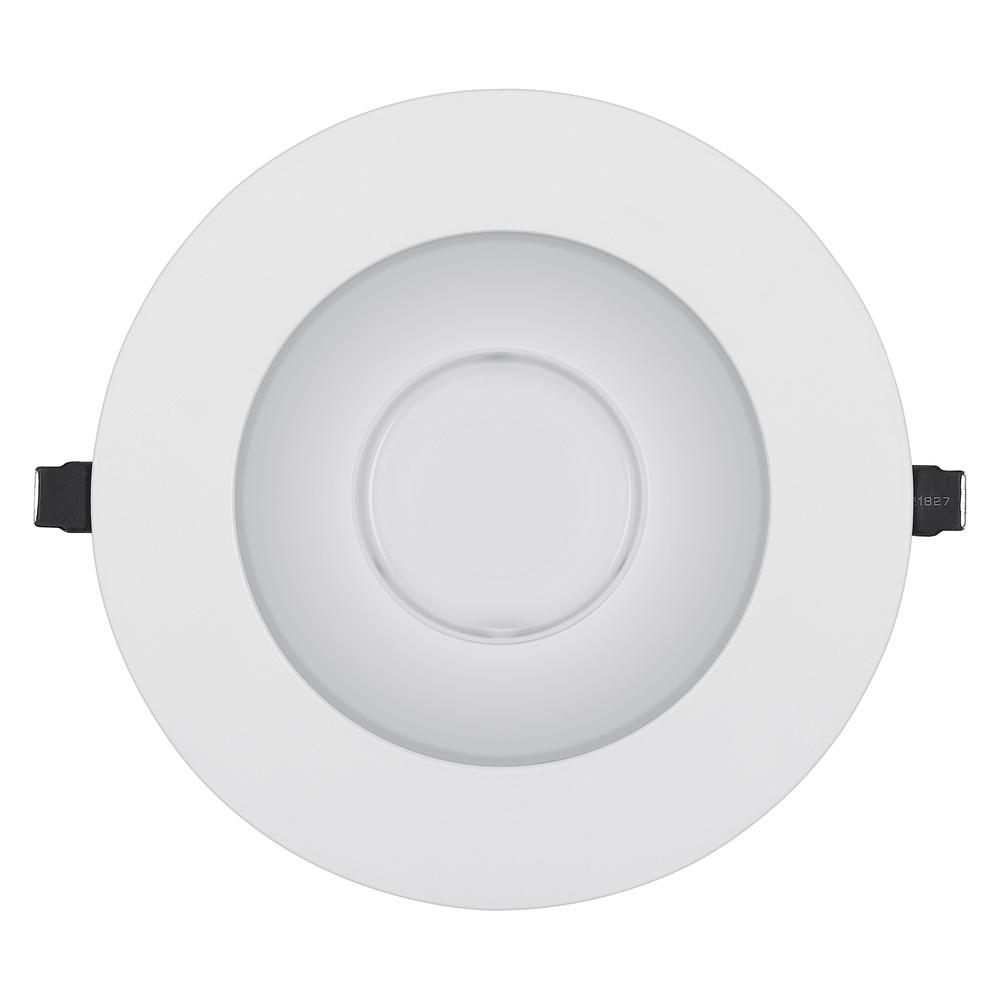 Army -arm downlights, suitable for comprehensive designs and Zigbee 3.0 Technology. Product properties: Io-capable lamp with Zigbee 3.0 technology. Housing material: aluminum with glossy reflector. Protection class: IP54 (side side) / IP20 (on the back). Connection box with plug -in clamp for toolless connection. Wiring through. Product advantages: Suitable lamp for Vivares and other Zigbee 3.0 Light Management Systems. Good glow (UGR <19) and cut-off-angle up to 30 ° for comfortable interior lighting. Easy and quick installation thanks to a connection box with a 5-pin, toolless connection clamp. Flicker light. Suitable for use in dusty and moist environments thanks to the high type of protection. 5 years of guarantee. Areas of application: Suitable for office applications, in particular screens. Direct replacement for lights with compact fluorescent lamps. Corridors / corridors. Baths, kitchens and covered outdoor areas. General lighting. Technical equipment: External ballast contained