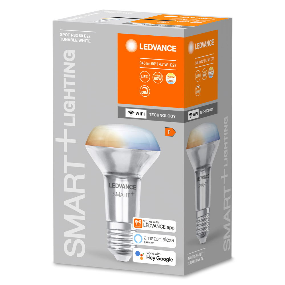 Smart+ Spot Concentra lamps with WIFI technology. Product properties: controllable via Ledvance Smart+ WiFi app (with at least Androidâ "¢ ï¸ 4.4 or iOS 9.0). Control via Google Assistant or Amazon Alexa possible. Network protocol: WiFi. Light color via tunable white adjustable: warm white to cold white (2,700 ... 6,500 k). Dimmable. Lifespan: up to 20,000 h. Product advantages: wireless control via app. Easy installation and use. Does not contain any mercury. Areas of application: general lighting. Living rooms. Trade (hotels, bars, boutiques, etc.). Exterior applications only in suitable lights.