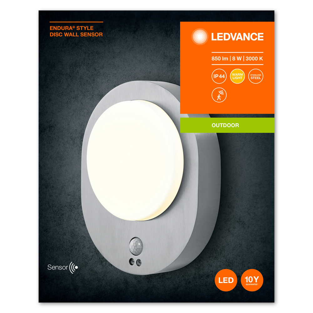 Ledvance LED outdoor wall light in stainless steel optics with optional sensor ENDURA STYLE DISC Wall Sensor – 4058075564145