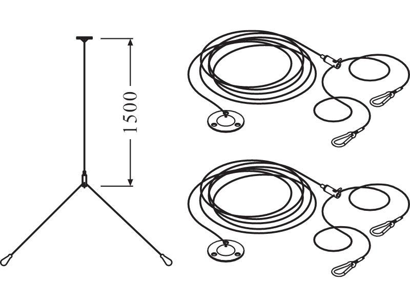 Pendulum set for panel lights. Product properties: Adaptable steel ropes, maximum length each: 1.5 m. Product advantages: adjustable pendant length up to 1.5m by means of a screw connection. Application areas: .