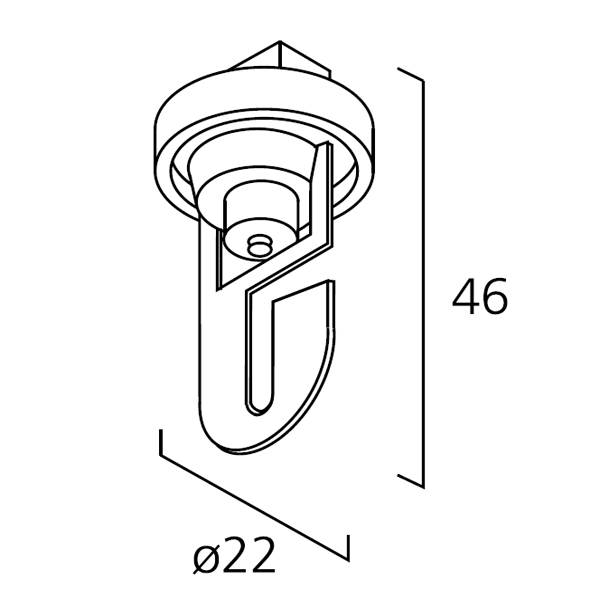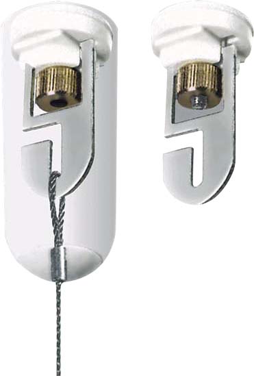 Universalhaken zur Befestigung von Drahtseilen für 3-Phasen-Stromschiene Anbau, max. Tragkraft: 10 kg, Stahlblechhaken mit Kunststoffsockel, Schutzkappe EU 37 separat bestellen