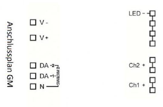 The Lunatone 2-channel constant current DALI DT6 LED dimmer for connection currents of 700 mA enables light regulation via DALI MC / Switch / Touchpanel. It has a dimming range from 0.1% to 100% and a switchable PWM frequency (122Hz / 244Hz / 488Hz / 976Hz). He also has a negative positive pole. The LED dimmer is suitable for flush mounting.