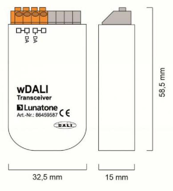 The transceiver wDALI remote is supplied via the DALI line so that no additional connection is needed. Multiple transceivers can be used on the same DALI signal line.