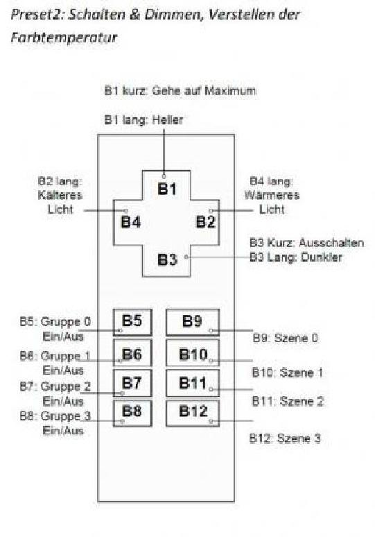 The remote control features 12 buttons. Each button can be freely assigned different functions. In addition, you can assign up to four effective ranges with individual functions to each button. An individual switching behavior can be set for each button (for example, short / long push button, toggle, stairways function). The configuration is easy via the DALI-Cockpit software tool.