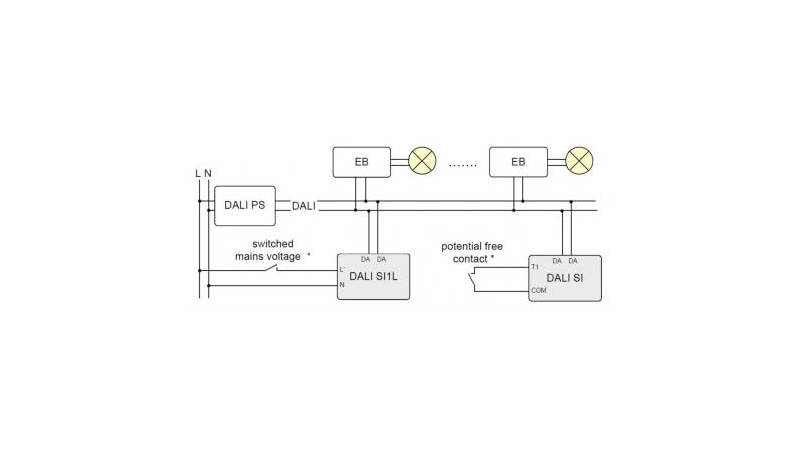 Installation Sensor interface for integrating conventional motion sensors or switches in a DALI circuit