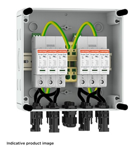 DC PV Junction Boxes ist eine Serie von DC Photovoltaik Generator Anschlusskästen zum Schutz der Umrichter nach IEC/EN vor Blitz- und Überspannungen. Die Boxen sind vorinstalliert und werden parallel zu den Umrichtern, hauptsächlich für 1000Vdc Dachinstallationen, eingesetzt. Verfügbar sind die Boxen in unterschiedlichen Konfigurationen, z.B mit Typ 1+2 Ableitern, Kabelverschraubungen oder MC4 - teckern und für eine unterschiedliche Anzahl an MPPTs und Strings.