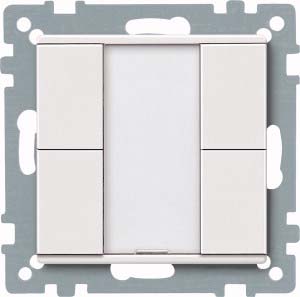 Im Design System M. Mit integriertem Busankoppler. Taster mit 4 Bedientasten, Betriebs-, Statusanzeige und Schriftfeld. Die Betriebsanzeige kann auch als Orientierungslicht verwendet werden. Das Gerät wird über eine Busanschlussklemme mit der Busleitung verbunden. Softwarefunktionen KNX Schalten, Umschalten, Dimmen (ein-/zweiflächig), Jalousie (ein-/zweiflächig). Flanken löst 1,- 2-, 4- oder 8-Bit-Telegramme aus (Unterscheidung kurze/lange Betätigung). Flanken mit 2-Byte-Telegrammen (Unterscheidung kurze/lange Betätigung), 8-Bit-Schieberegler, Szenenabruf, Szenenspeicherung, Sperrfunktionen. Zubehör Beschriftungsbogen für Taster 6183xx Lieferumfang Mit Putzschutzhaube. Mit Busanschlussklemme. Material Thermoplast edelmatt. Farbe polarweiß.